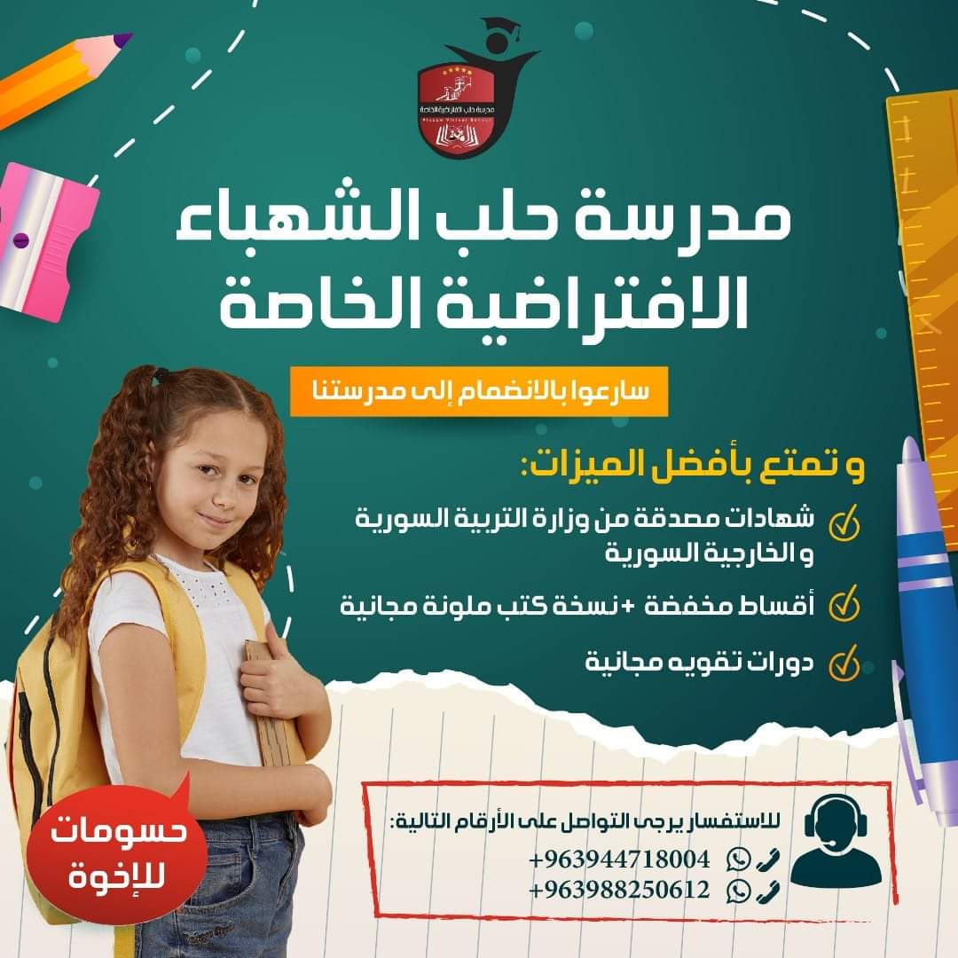 مدرسة حلب الشهباء الافتراضية تعتبر منصة تعليمية مبتكرة تقدم دورات تعليمية عبر الإنترنت للطلاب في مراحل التعليم الابتدائي والثانوي