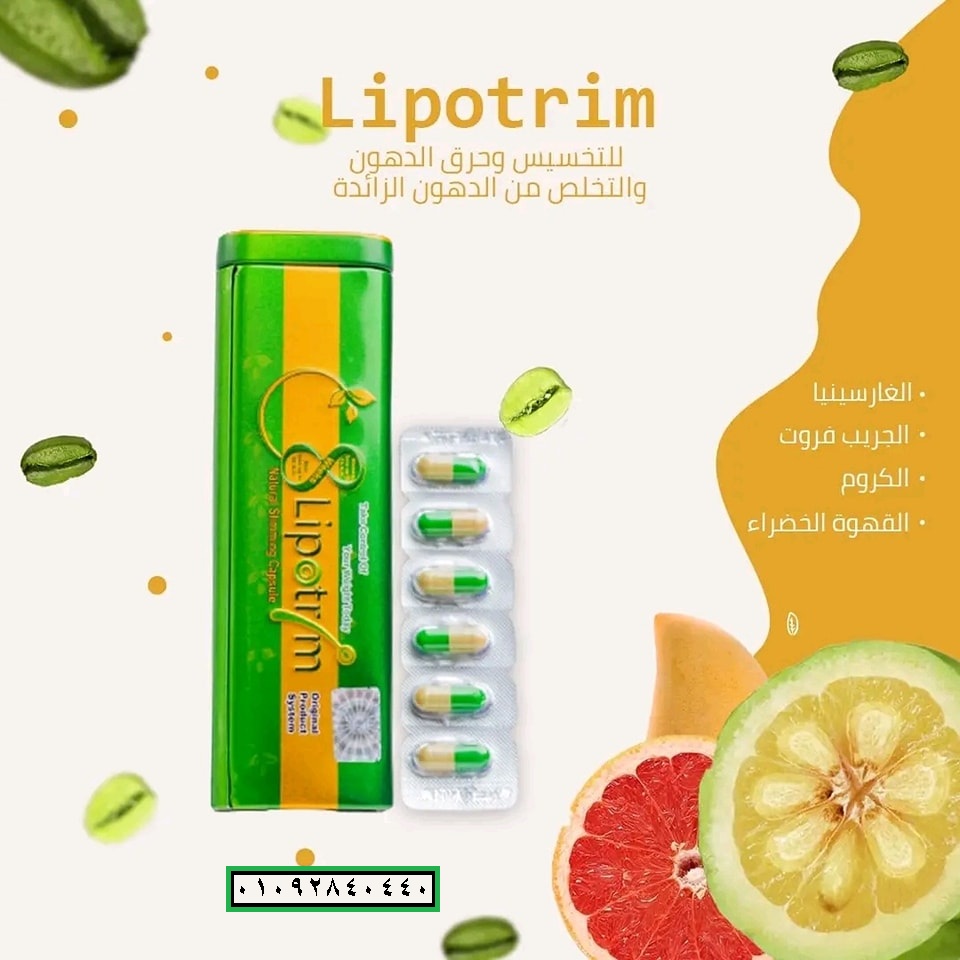 ليبوتريم الاخضر الاصلي new lipotrim منتج رائع لكل من يرغب في التخلص من الوزن الزائد بسهولة حيث يعمل على التخلص من الدهون والسعرات الحرارية الزائد ويساعد في طرد السموم والشحوم والماء الزائد المسبب للسمنة من الجسم كما يساعد على تحسين صحة الجهاز الهضمي وتحسين صحة الأمعاء وعلاج عسر الهضم وتنظيف القولون من بقايا الأطعمة، تساعدك الكبسولات أيضا على منع تراكم الدهون مرة أخرى من الطعام الى الجسم حتى لا تعود للسمنة مرة أخرى.