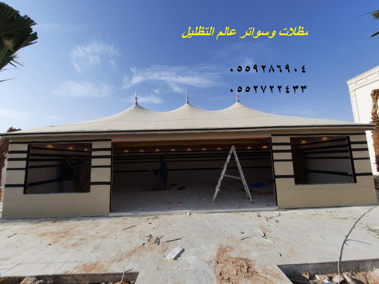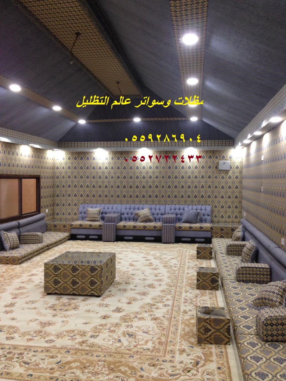 يعد تصمم بيوت الشعر بديكور داخلى متميز ونحن كمؤسسة ننفرد بتصاميم فريدة متميزة ل حيث لها جمال خاص من الداخل والخارج لاعتمادنا على الديكور الشعبى بشكل متميز وراقى ومختلف.تصنعمن هيكل حديدي بعد أن يتم صبه فى خرسانة مكونه من الاسمنت ثم يوضع هيكل الحديد عليها وتكون مرتفعة عن الأرض وذلك لحمايتها الامطار والرياح.