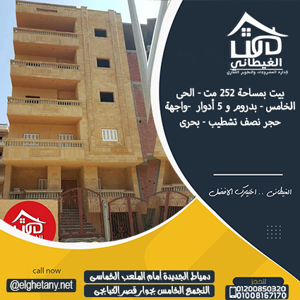 بدروم و 5 أدوارنص تشطيبالواجهة حجربحريللأستفسار : 01008167170 – 01200850320 – 1005008914دمياط الجديدة – بجوار الكنيسة أمام الملعب الخماسىالتجمع الخامس – شارع ال90 الشمالى بجوار قصر الكبابجىelghetany.net ...