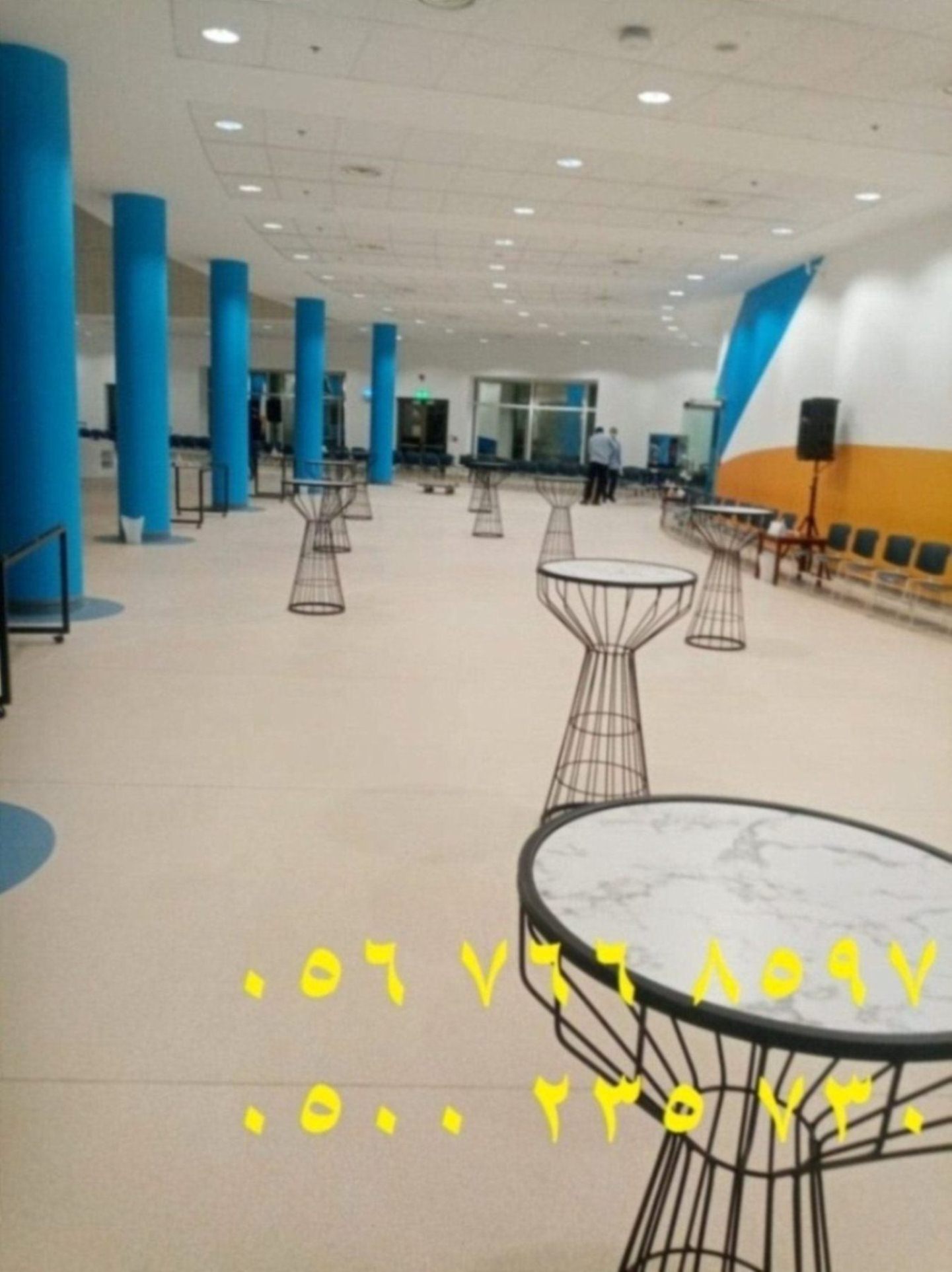 تاجير طاولات كوكتيل متوفرة بالأنواع : مضيئة , تلبيسة , حديد مع خشب ,