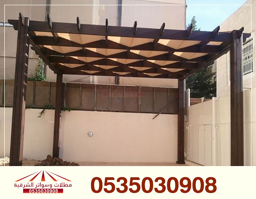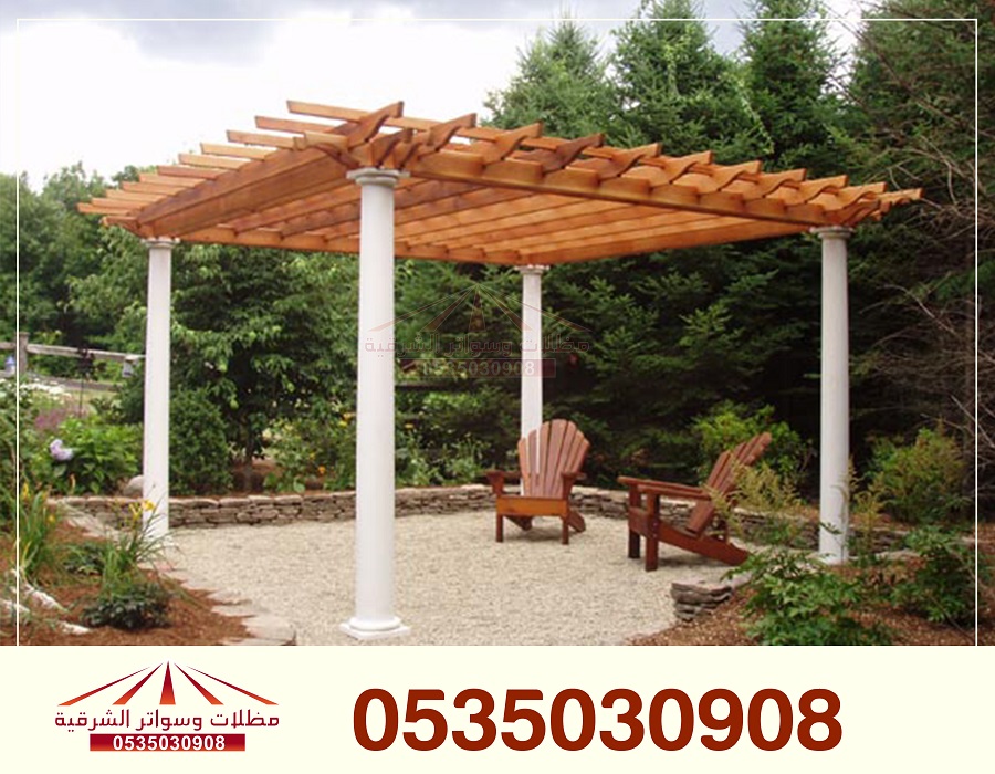 بروجولات: هياكل معدنية أو خشبية كبيرة يمكن تغطيتها بالقماش أو النباتات المتسلقة لتوفير الظل. تعتبر خيارًا جماليًا ومتينًا.