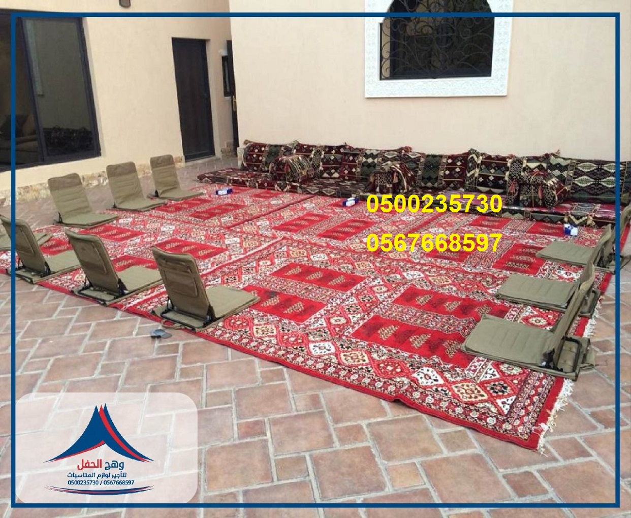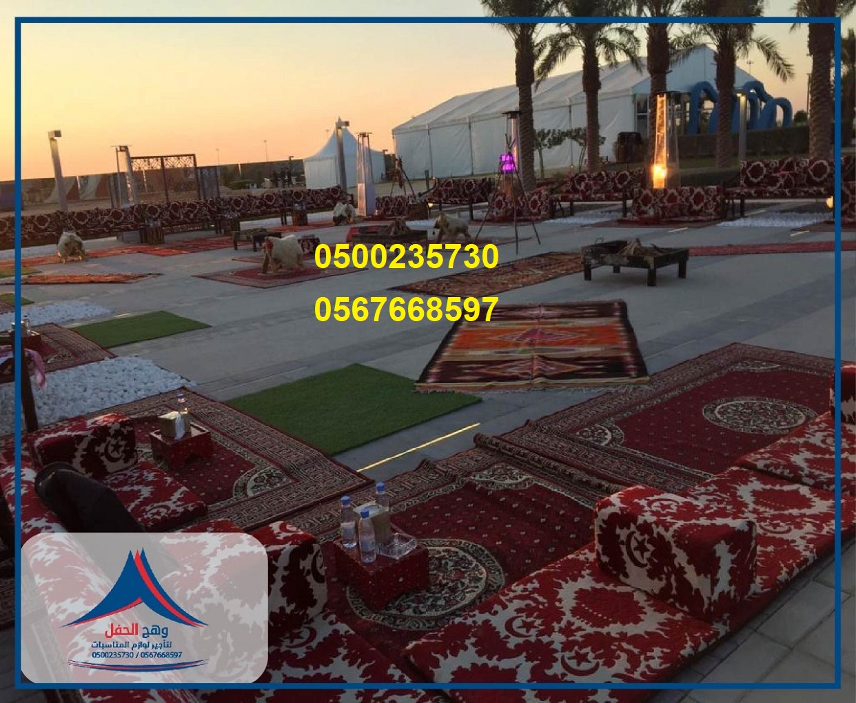 ايجار جميع انواع المجالس,جلسات ارضية,ايجار خيام,كنب شعبي,تزين قاعات