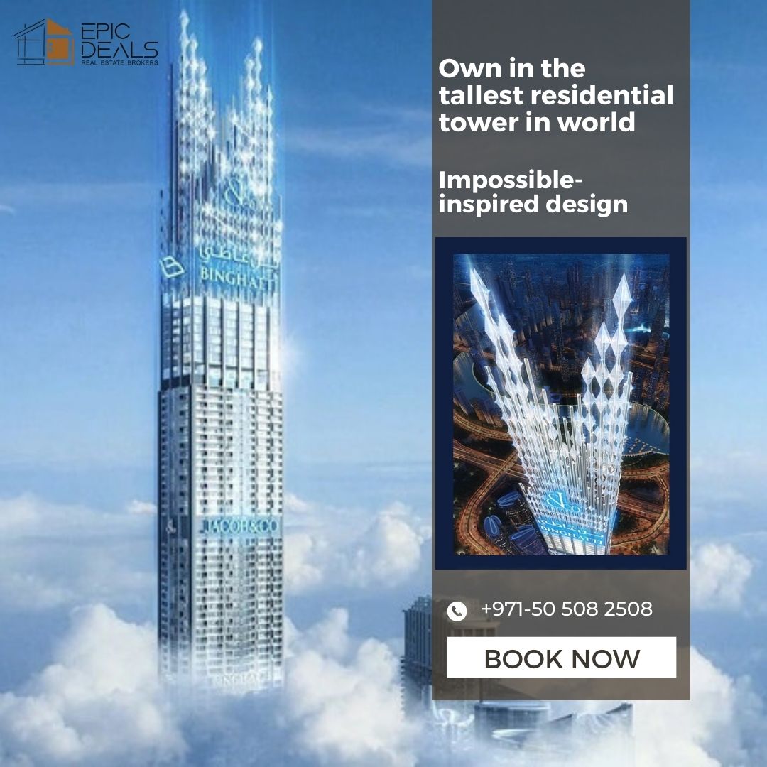يضع “برج بن غاطي جاكوب آند كو ريزيدنسز”، معيارا جديدا للعقارات رفيعة المستوى بوصفه برجا شاهق الارتفاع، حيث تمثل ناطحة السحاب الفريدة من نوعها بداية حقبة جديدة من أسلوب المعيشة الفخمة، وتهدف إلى تحقيق رقم قياسي بوصفها أحد أطول المباني السكنية في العالم، وتقف شامخة بفخامة في قلب الخليج التجاري وهي المنطقة المالية الأكثر شهرة في دبي