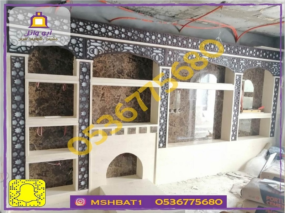 ديكورات مشبات الرخام والجبس والجرانيت, ديكورات مشبات الطوب الرملي والديكوري والطوب الاحمرلدينا كادر مؤهل على تركيب جميع انواع واحجام المشبات.خامات عالية الجودة