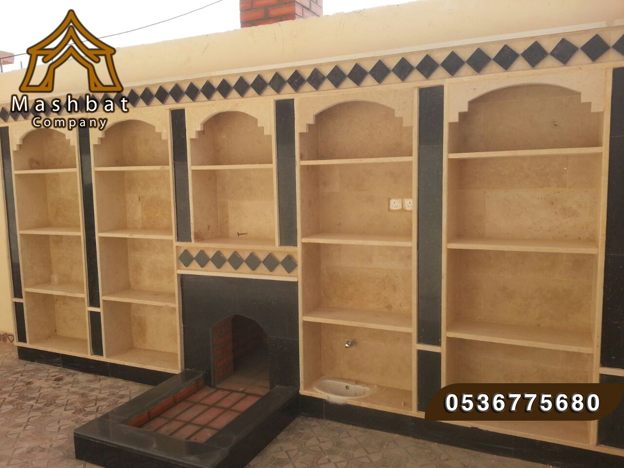 مشبات حجر مع أرفف للديكور أو وضع أدوات القهوة.