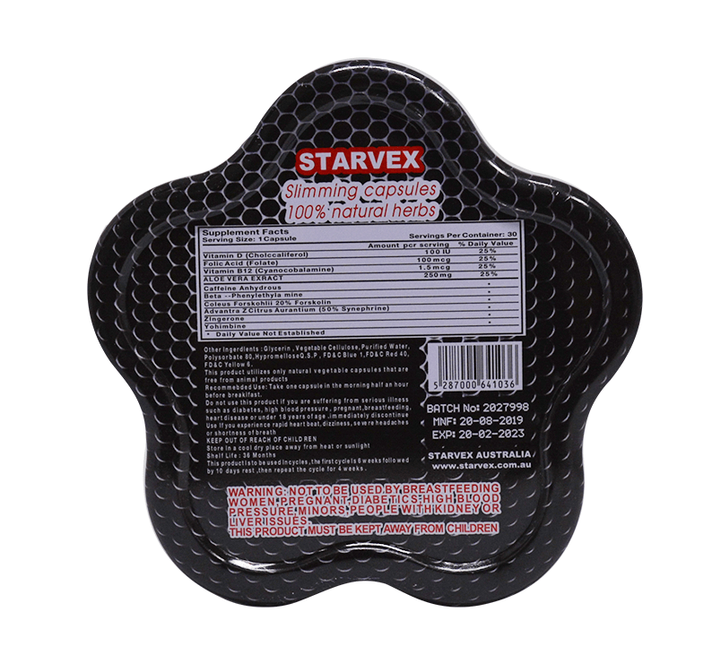 تحرق كبسولات New Starvex الأصلية للتخسيس الدهون وتتخلص من السيلوليت ، وتساعد على شد الجلد بعد عملية التخسيس لمنع ترهل الجلد الزائد.