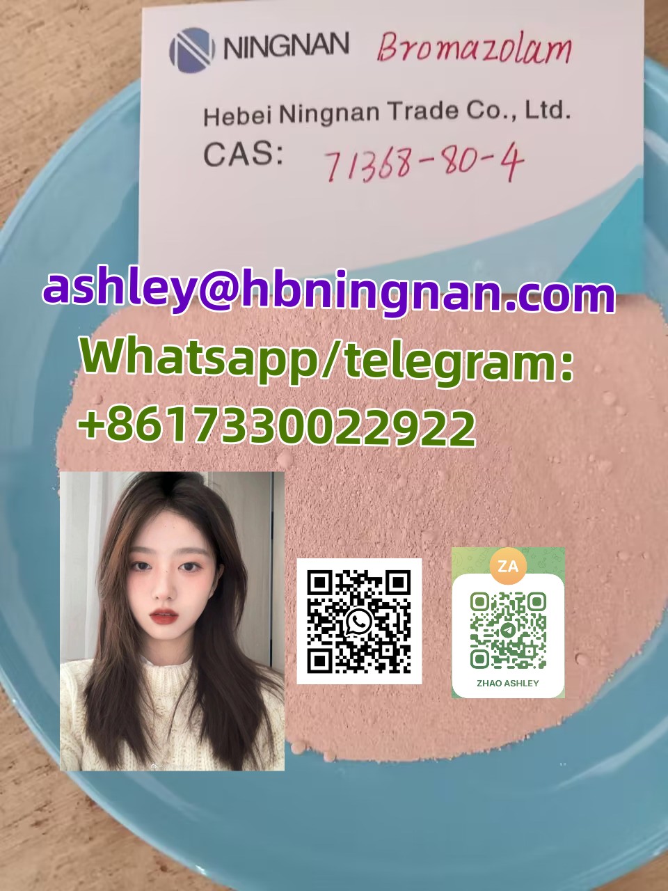 CAS: 71368-80-4 姓名: Bromazolam 外观:粉末 纯度:99% 样品:可用 付款方式:比特币、西联汇款、T/T 供您选择。 交货:DHL、TNT、Fedex、UPS、HKEMS、EUB、专线 5-15 天。我们还提供投递服务,并保证交货。 Whatsapp/电报:+8617330022922 福克斯邮箱:ashley@hbningnan.com 脸书:Zhaoashley8@gmail.com...